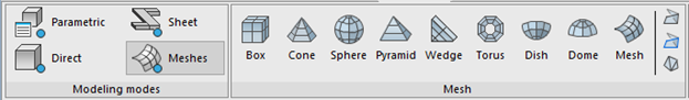 Quando o usuário seleciona o modo Modelagem de Malhas, os comandos padrão para criar superfícies 3D ficam disponíveis.