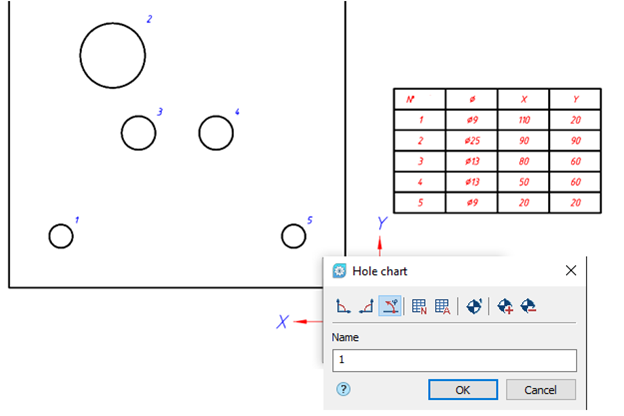 The Tables of holes tool now constructs the left coordinate system of holes.